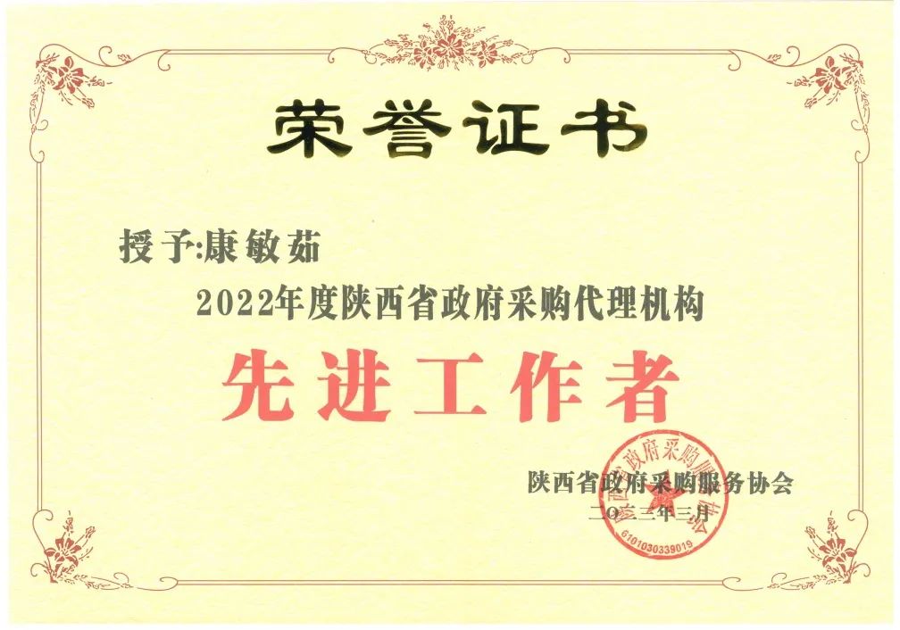 2022年度陜西省政府采購代理機構(gòu)先進工作者