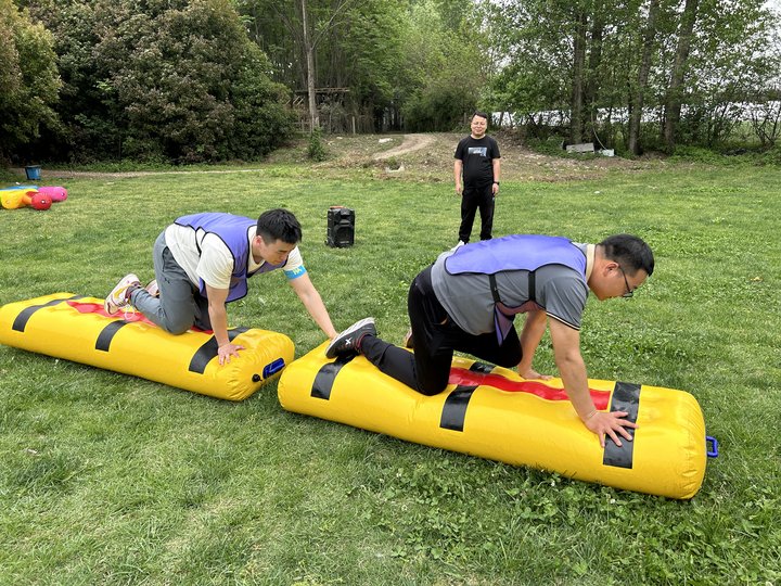 每組用3張充氣墊,上面站立4名隊(duì)員