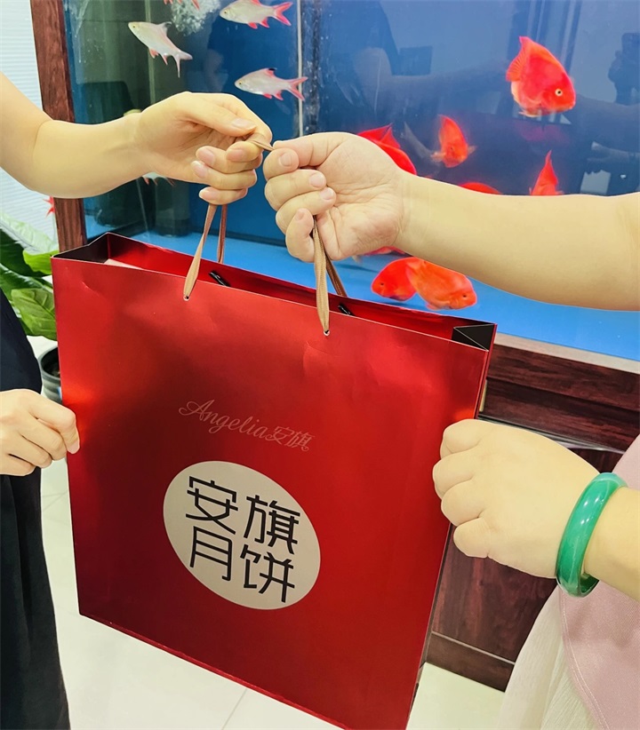 將滿載溫情與祝福的中秋福利月餅禮盒發(fā)放到員工手中。